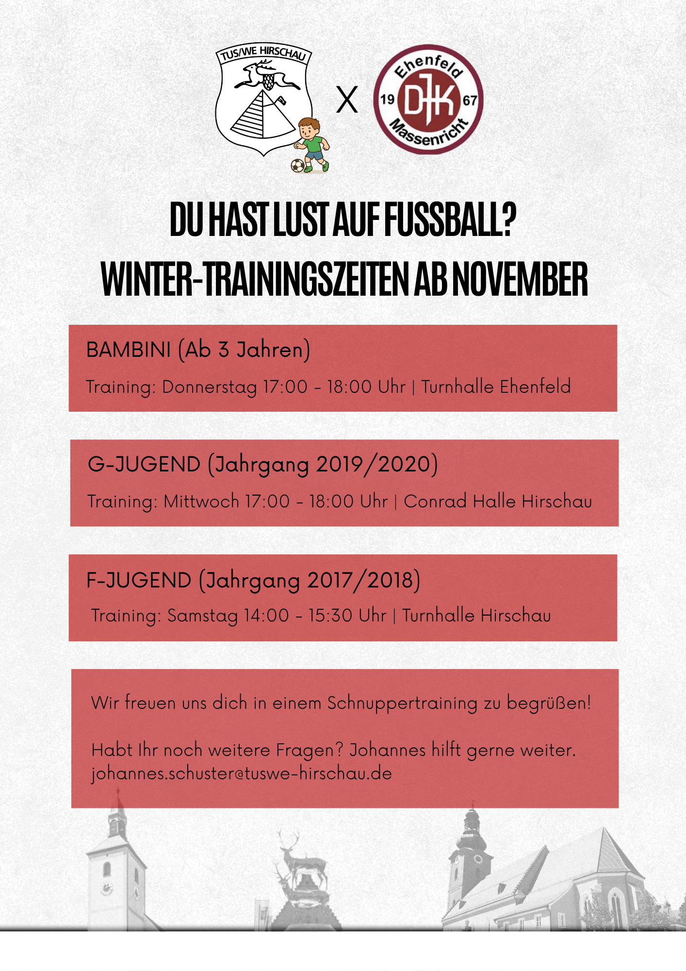UPDATE: Bitte beachten, die Trainingszeiten der F Jugend haben sich geändert zu Mittwoch 17:30 bis 19:00 Uhr und Sonntag 09:30 bis 11:00 Uhr.